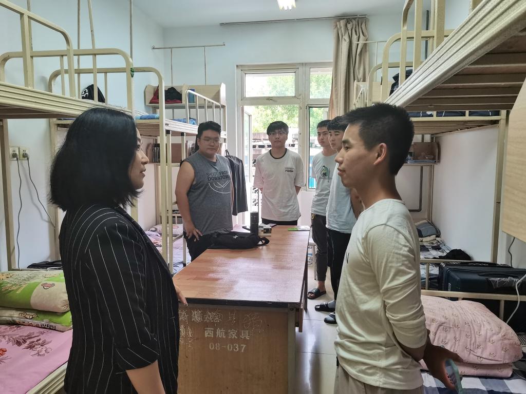 下午,学院领导带领学生辅导员共同深入新生宿舍看望2021级新生,和同学们亲切交谈,对新生的入住环境、入学教育安排表示关心,并嘱托同学们要团结友爱、珍惜大学时光、做好学业规划,让新生们感受到了学院的温暖。