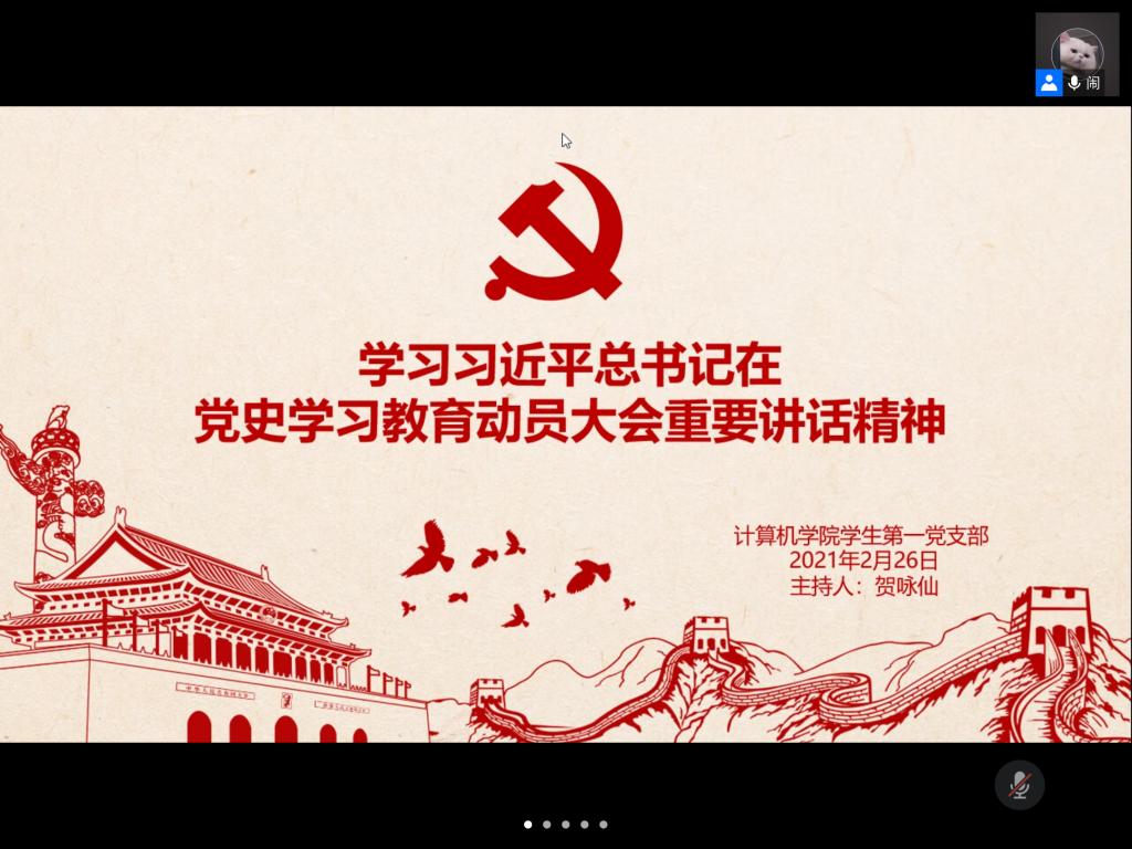 为了更好地学习党史,九游体育官网学生第一党支部于2月26日晚上7点在线上开展了学习习近平总书记在党史学习教育动员大会上的重要讲话精神。本次学习由学生第一党支部学生党员贺咏仙主持,学生第一党支部所有党员、预备党员和积极分子参会。