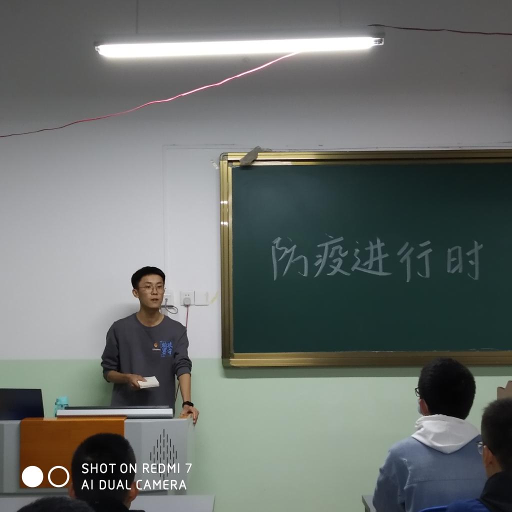 活动开始前,侯勇老师针对当时青岛疫情要求同学们通过本次活动,了解.线下防疫与节时防疫的区别,继续提高警惕,做好日常防护。活动开始后,赵雨晰同学结合官方新闻媒体《新闻1+1》,用事实提醒同学们加强防疫工作。赵雨晰同学通过“防疫知识知多少”、“我在防疫的日子”等章节,带领同学们更加深层次的了解防疫知识和保护自己的相关举措。并且通过活动分享,同学们通过分享自己的学习心得,增加了自己的防疫知识。活动后,侯老师对同学们提出了以下要求:1.注意个人卫生,熟练运用七步洗手法,外出注意个人防护;2.端正态度,对于疫情防护不可存在侥幸心理;3.每天按时打卡,及时上报个人身体情况,共同营造良好教学环境。并且希望同学们在特殊时期保护好自己积极配合学校卫生工作,营造舒适安全的校园环境。