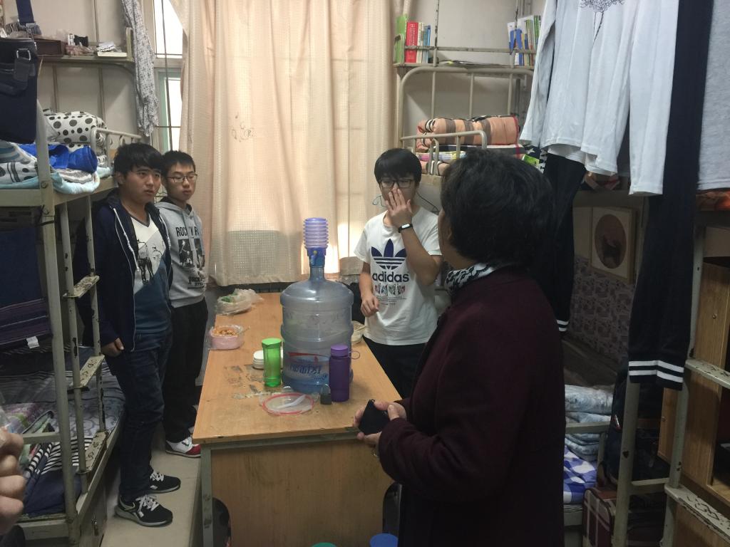 为保障学生的生命、财产安全,确保学校“平安校园”工作的顺利实施,11月8日中午,由党总支书记刘晋云、学生管理科科长汪芳及全体辅导员对学生宿舍进行冬季安全检查。