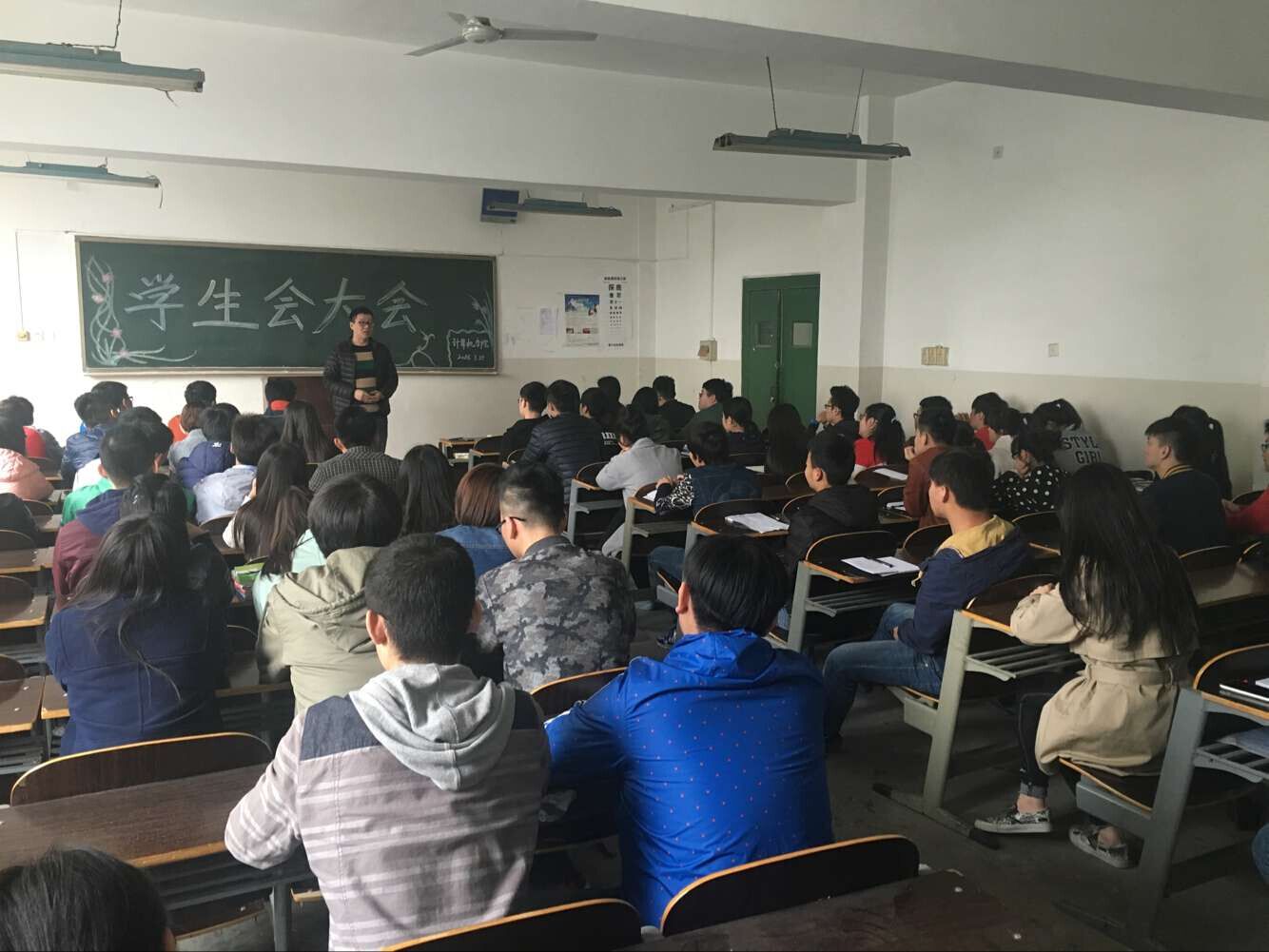 会上,学生会主席周洪磊致辞并汇报了学生会上学期的主要工作,安排了学生会新学期的主要工作。