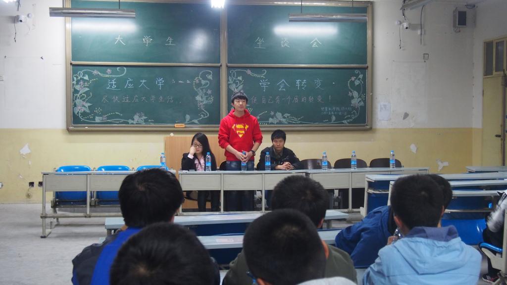 活动开始,首先让大家自由讨论和提问,接着由大二、大三的学长为大家分享自己生活、学习等不同方面的经验,讲述了大学这个特殊环境与以往的不同,对大家的疑惑和提出问题也进行了解答,使在座同学收益匪浅,对大学也有了新的认识和理解。至此,活动圆满结束。