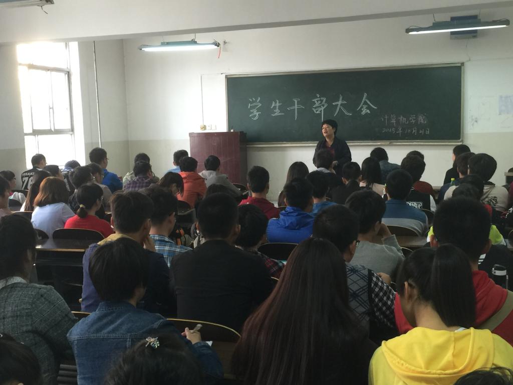 10月21日,九游体育官网举行2015年换届后第一次学生干部大会。学院党总支书记刘晋云、团总支书记米嘉琪、辅导员王靖晶参加了本次会议。