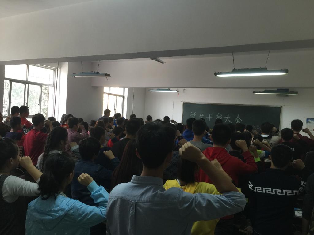 刘书记对老一届干部的努力工作表示感谢,对新成员的加入表示欢迎,希望同学们能做一名合格的学生干部,拥有良好的道德素质、能力素质和身心素质,处理好学习和工作的关系,处理好得与失的关系,借助学生会的平台更好地锻炼自己。在各部门部长做完工作汇报后,团总支副书记尹吴越同学带领大家集体宣誓,在高昂的热情中结束了本次大会。