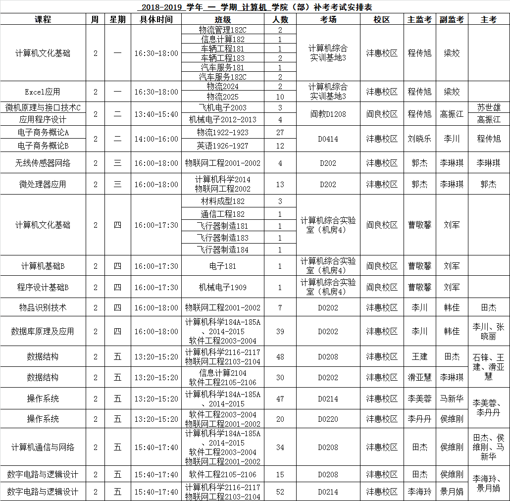 九游体育官网2018-2019-1学期课程补考
