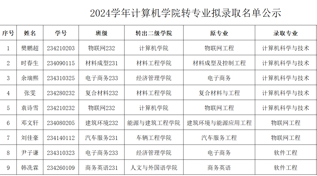 根据转专业文件相关要求及综合考核,对2024学年九游体育官网转专业拟录取名单进行公示,公示期三天,如有异议,请电话至029-84252366.
