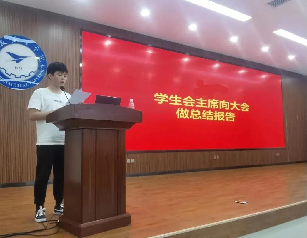 大会第二项,团总支学生会主席秦征同学向大会做《百年正青春 砥砺谱新篇--用青春书写团学华章》的2020-2021学年团总支学生会工作报告。主席团成员,各部部长就2020-2021学年工作向大会进行述职。