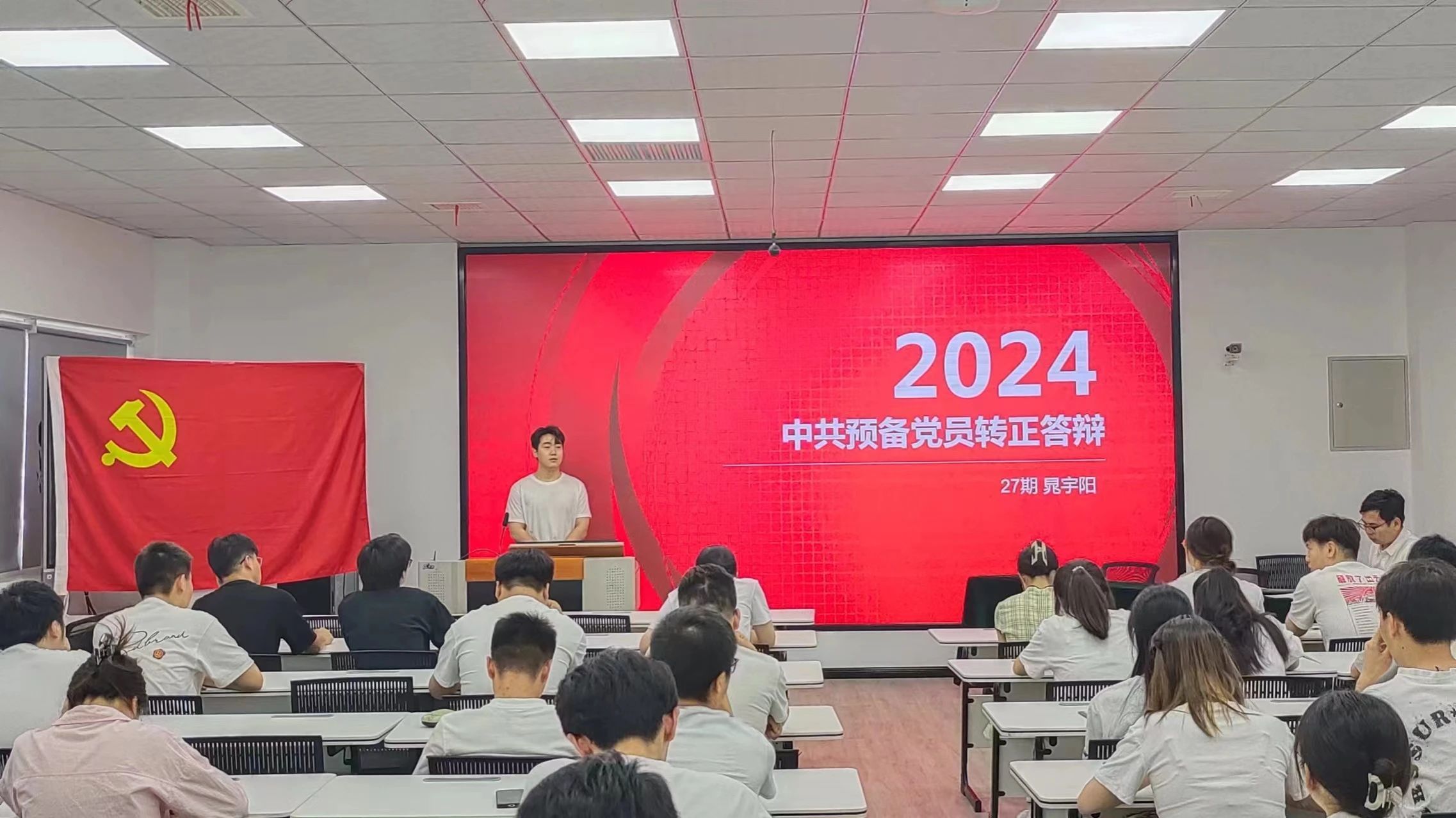 2024年5月22日,九游体育官网学生第一党支部在教学主楼0920召开预备党员转正大会。会议由学生第一党支部书记贺宇主持,九游体育官网学生第一党支部全体在校党员参加本次会议。