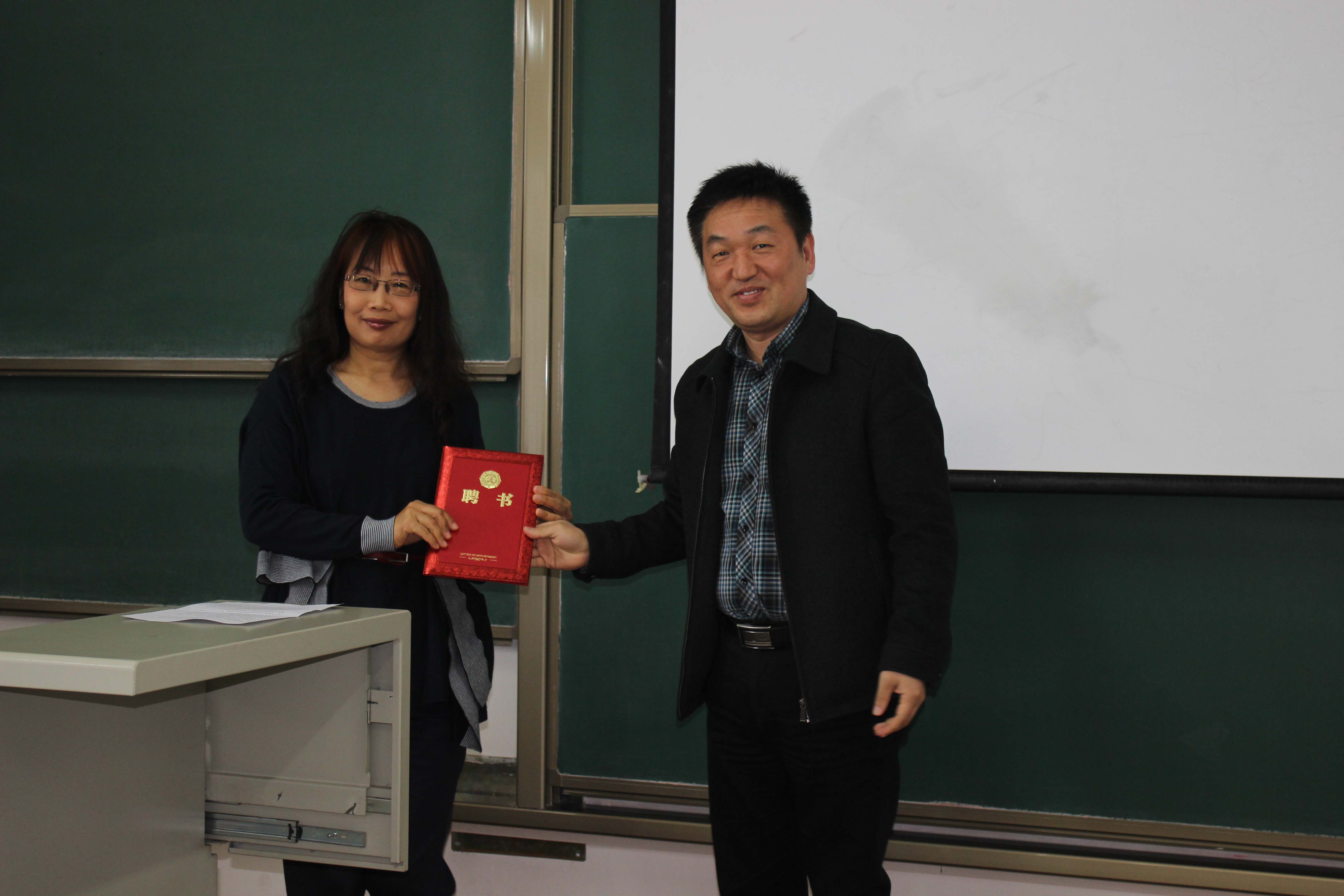 报告前,地震科学系党支部书记达勇同志宣读了聘任书,聘请朱兆芳女士为防灾科技学院地震科学系客座教授。