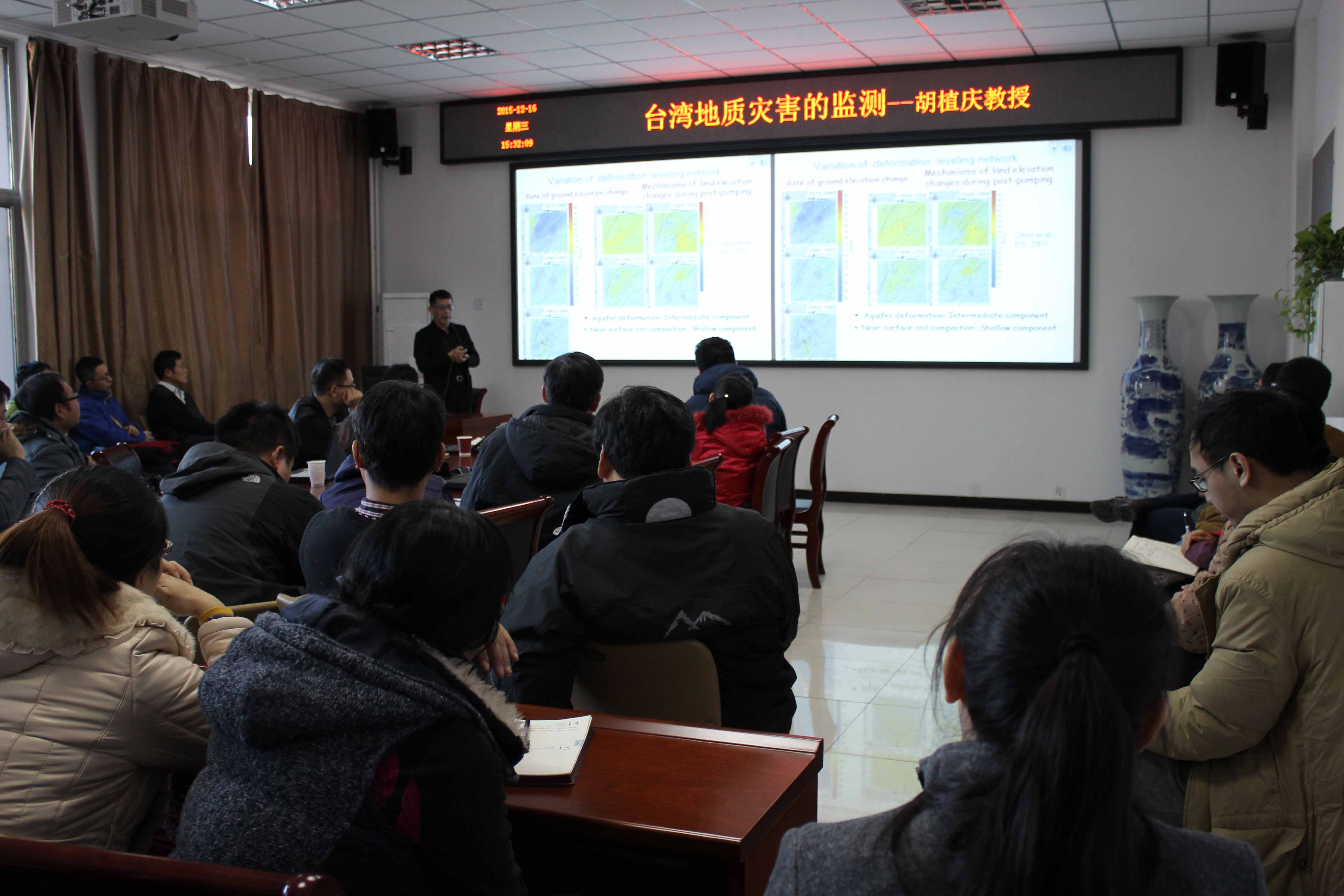 12月16日,台湾大学胡植庆教授应邀来beat365做学术报告,地震科学系、防灾工程系部分师生、张衡班学生及部分研究生参加了报告会。