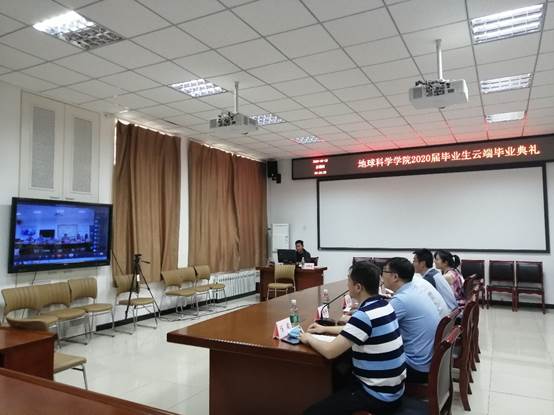 新冠肺炎疫情肆虐,阻挠了部分毕业生返校的步伐,在匆忙返校离校间,2020届毕业生匆匆为大学画上了一个句号,来不及诉说师生情谊、来不及互道离别,为充分表达学院对毕业学子的深切祝福,2020年6月18日上午,地球科学学院2020届毕业生云端毕业典礼成功举办,地球科学学院院长姜纪沂、党总支书记唐圣华、副院长孙珍军、毕业班辅导员王鹤、刘青、教师代表马欢在126会议室线下会场通过视频与全院师生共聚云端,用一场特别的形式,重温师生情谊,书写大学完美注脚。