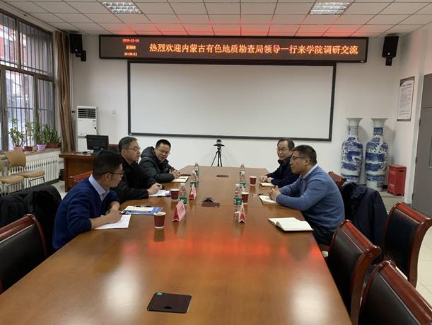 12月10日下午,内蒙古有色地质勘查局综合普查队党委书记张宝山,副队长牛兴国到beat365调研交流。地球科学学院院长姜纪沂热情接待并召开座谈会,地球科学学院部分教师参加了座谈。
