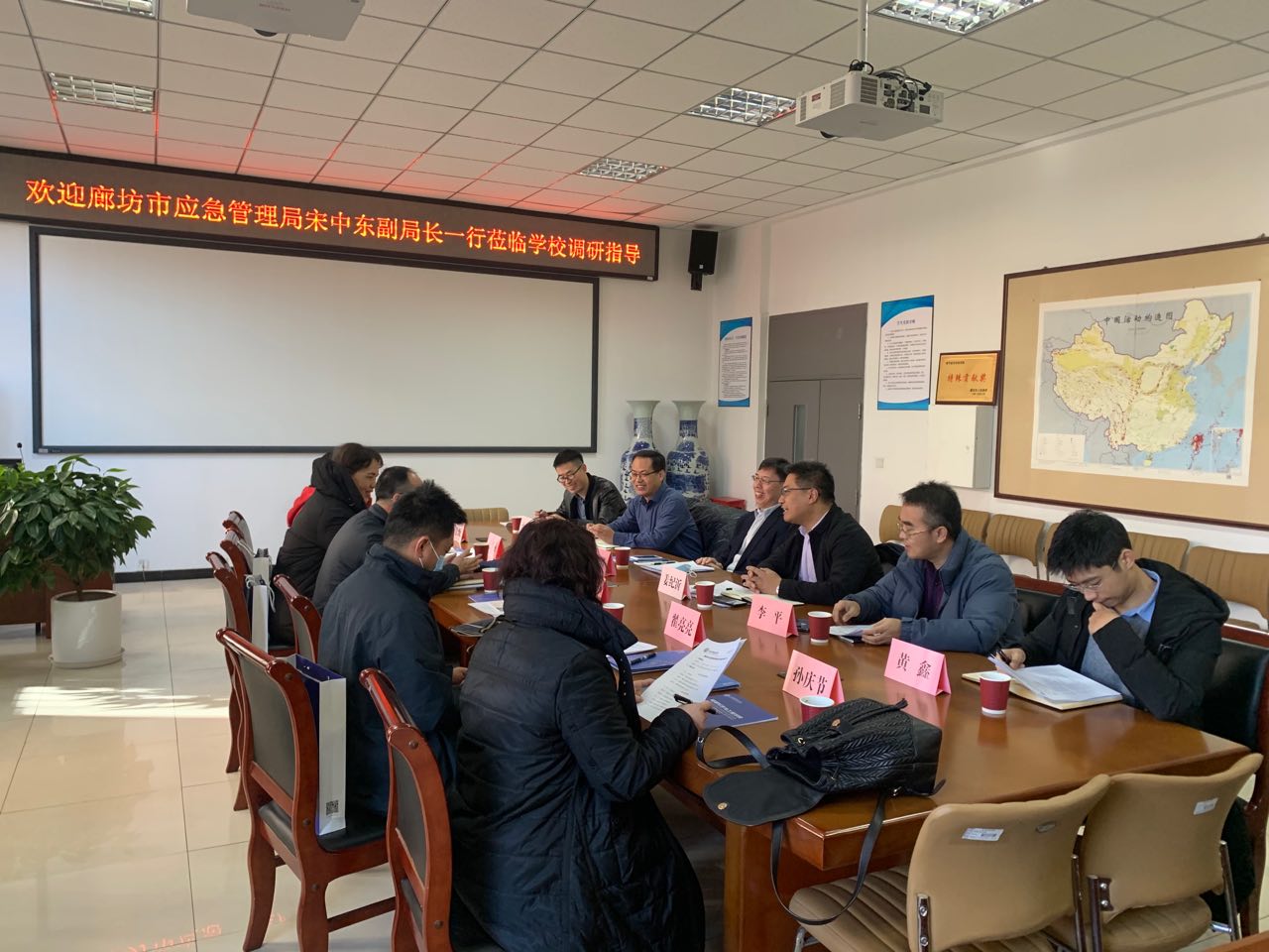 参加座谈会的二级学院负责人分别围绕台站共建模式、数据共享服务、地震风险评估、灾害风险普查、防灾减灾规划、科学观测实验场建设等方面工作,与来访相关负责人进行了交流研讨,就共同推动廊坊市应急管理事业高质量发展达成了多方面共识。