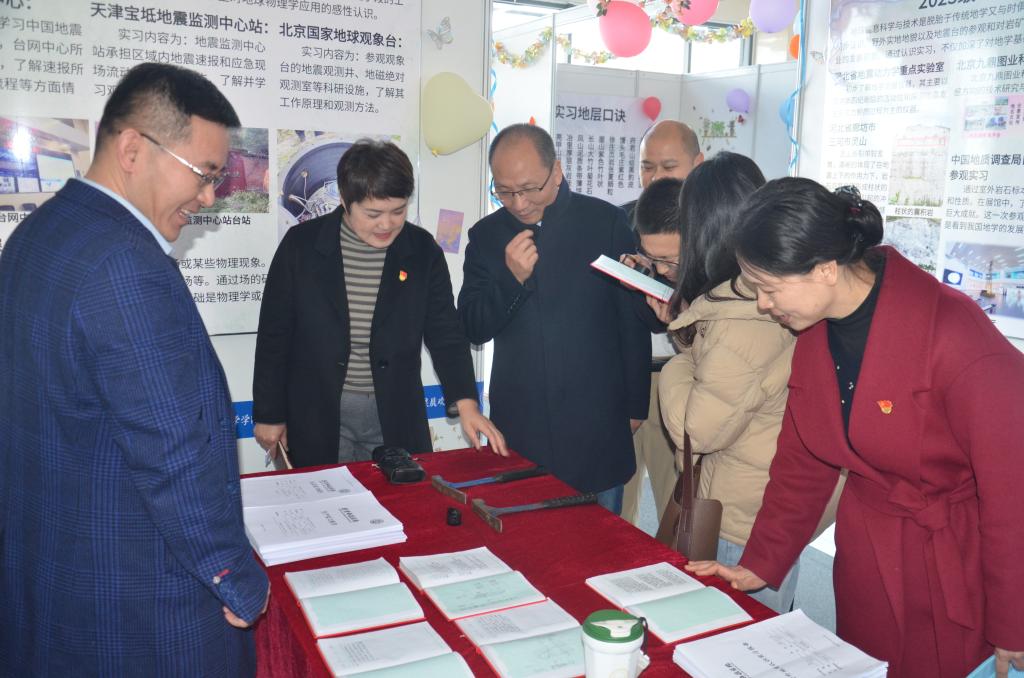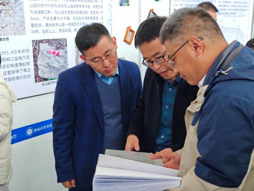 11月19日,党委组织部部长边修蕊、党委宣传部部长贾作璋、党委学生工作部部长张伟参观地质实习成果展并细致翻阅了学生实习报告,与讲解老师就某些科学问题深入交流,对地球科学学院学生实习成果展的举办及“四融”创新人才培养成果给予高度评价和充分认可。