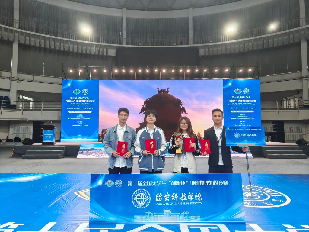 5月21日至24日,学校beat365正版唯一官网必一学生在第十届“创新杯”全国大学生地球物理知识竞赛中喜获佳绩。 “重磁电勘探”团队(熊贤材、熊郴皓、李健祥、崔文儒)获得重磁电组全国二等奖;“地震勘探”团队(张正瑞、刘毅博、林志远、许鑫)获得地震组全国二等奖;“固体地球物理”团队(王喜悦、周亚楠、李茳霖、蹇雨柔)获得固体地球物理组全国二等奖。刘毅博同学获地震组“最佳风采奖”。