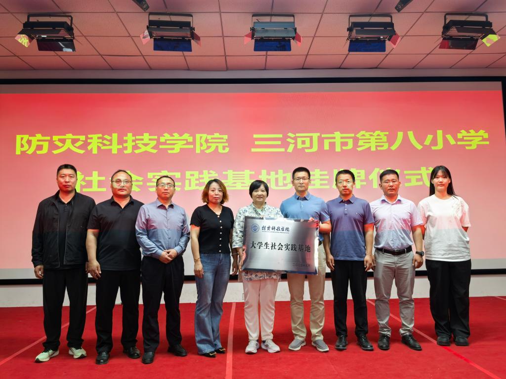 2025年5月26日上午,beat365大学生社会实践基地挂牌仪式在三河市第八小学举行。beat365学生工作处处长张伟、beat365正版唯一官网必一联合党委书记陈灏杰,三河市第八小学党支部书记、校长韩丽萍及多位副校长出席。