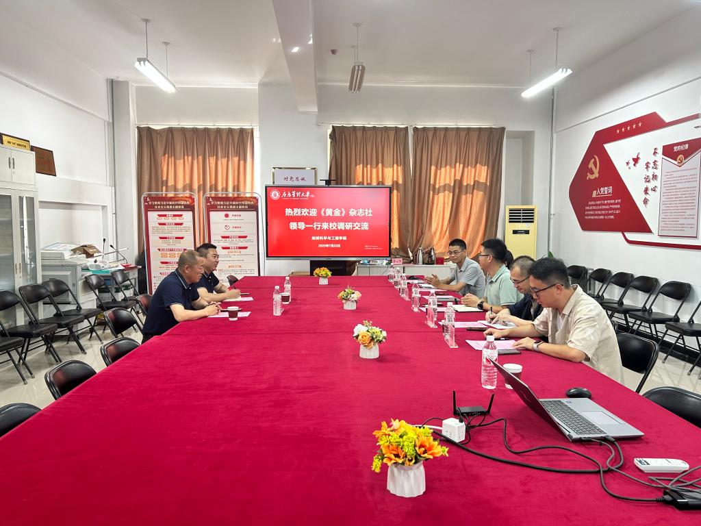 7月22日下午,《黄金》杂志社社长张继武、主任王学阳一行到beat365调研交流。地球科学与工程学院副院长孙珍军热情接待并召开座谈会,beat365正版唯一官网必一、矿山安全学院部分骨干教师参加了座谈。