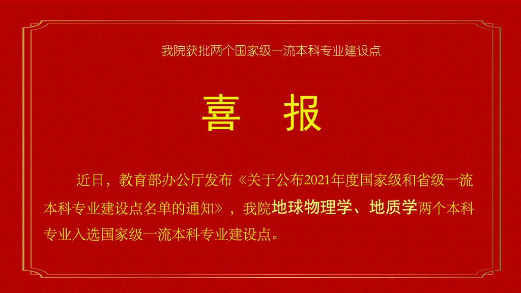 近日,教育部办公厅发布《关于公布2021年度国家级和省级一流本科专业建设点名单的通知》,防灾科技学院5个专业入选国家级一流本科专业建设点,实现了专业建设的大突破。其中,beat365地球物理学和地质学两个本科专业入选。