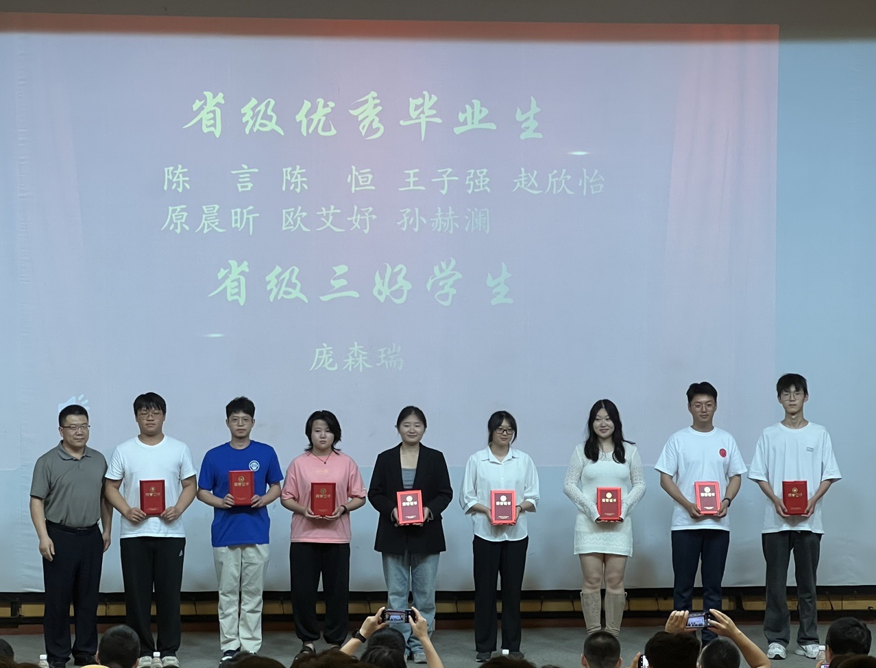 陈灏杰代表学院宣读2024届优秀毕业生表彰决定,校、院领导和各教研主任为优秀毕业生代表颁发证书。
