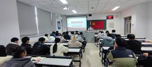 2023年12月25日中午地球科学学院学生第一党支部全体党员在天仪楼北115教室组织党员转正大会。此次大会由支部副书记李珊同志主持,地球科学学院学生第一党支部书记黄骥超同志参加此次会议。