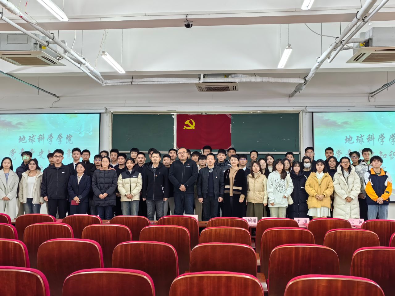 为深入学习贯彻习近平新时代中国特色社会主义思想主题教育,落实“学思想、强党性、重实践、建新功”的总要求,增进同学们对党章党史的了解,检验党章学习小组学习成效。地球科学学院学生党建工作中心于11月23日在天仪楼508教室举办了“与红相约,永远跟党走”党章党史知识竞赛决赛。学院党总支书记陈灏杰、学生第一党支部书记黄骥超、学生第二党支部书记王鹤、辅导员李照阳、杨玉等莅临比赛现场并担任评委。