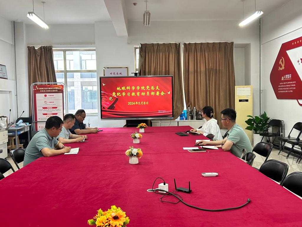 为推动党的纪律建设,强化党员干部遵守纪律的自觉,组织好党纪学习教育,地球科学学院党总支于5月8日召开党纪学习教育动员部署大会,学院全体中层干部、党支部书记参加学习。