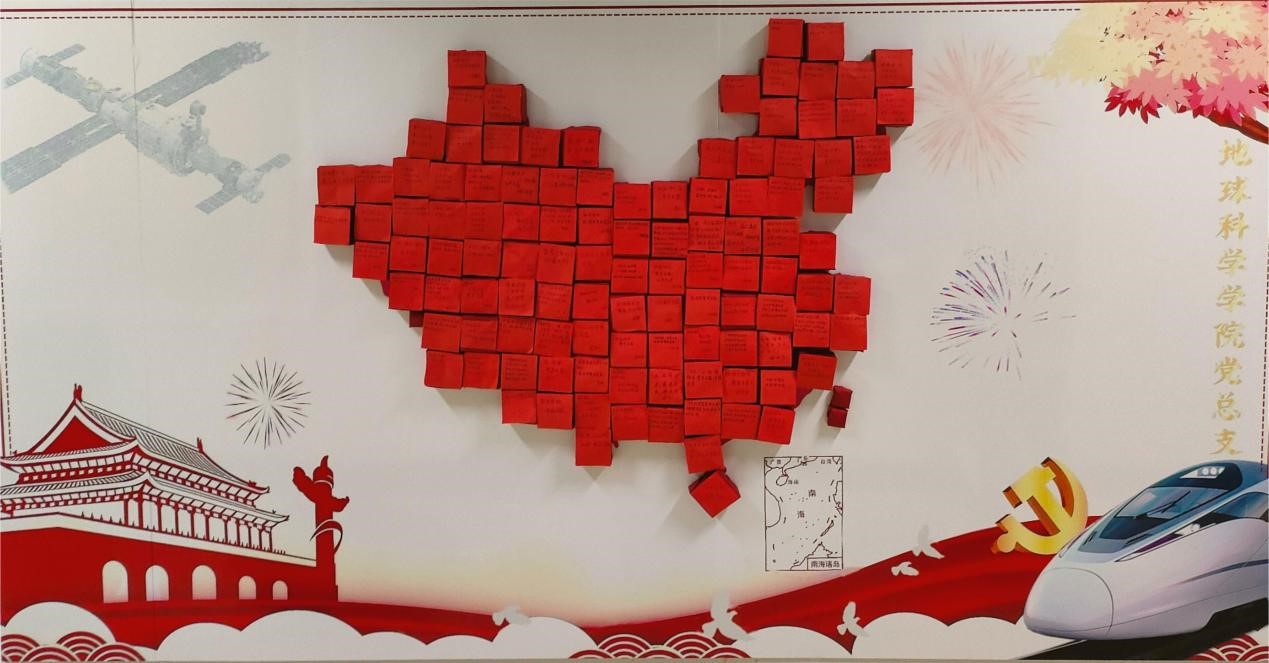 为庆祝新中国成立75周年,进一步激发广大师生的爱党爱国情怀,地球科学学院党总支于9月29日组织师生党员开展了“红心映地图,国庆献祝福”主题党日活动。