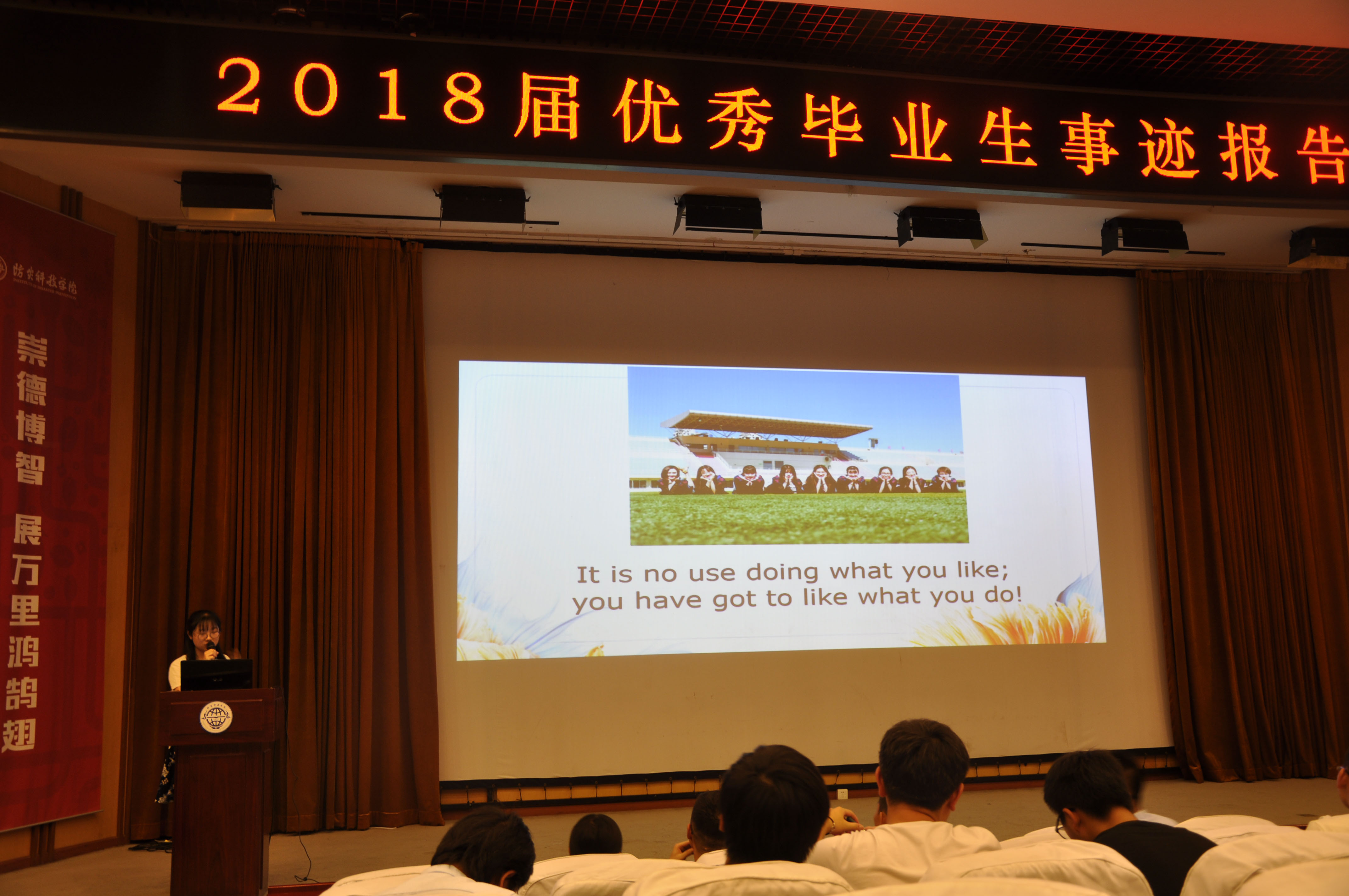 2018年6月3日晚,地震科学系在南校图书馆报告厅举办了2018届优秀毕业生事迹报告会。报告会上,获得2018届省级优秀毕业生的薛红盼、侯愷、余仕免、徐怡然、王菁五名毕业生先后为在场的大一、大二年级的同学们讲述了自己大学四年的成长经历,向大家分享了自己在专业学习、课外活动、学科竞赛、志愿服务、考研就业以及申请留学等各个方面的经验和体会,鼓励大家珍惜大学时光,做好大学规划,努力提升自身素质,为实现自己的人生理想打下坚实的基础。(撰稿:唐圣华 摄影:张梦薇)