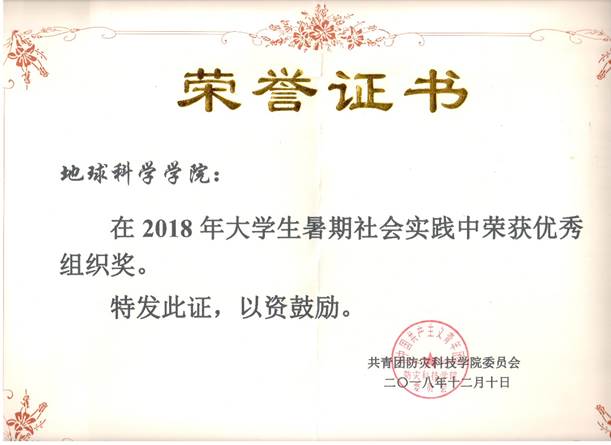 10月31日晚,学校在图书馆报告厅举办2019年大学生暑期社会实践成果报告会,会上对2019年大学生暑期社会实践获奖集体和团队进行了表彰,beat365获得“优秀组织奖”,这也是beat365继原地震科学系于2015年、2016年、2017年、2018年连续四年获得该奖的基础上第五次获得“优秀组织奖”。